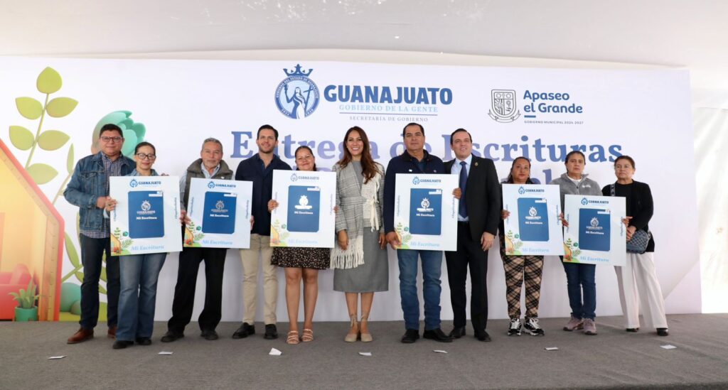 En el mismo evento, la gobernadora Libia Dennise entregó 153 escrituras públicas a 597 habitantes de Apaseo el Grande, como parte del Programa Estatal de Regularización en Materia de Tenencia de la Tierra.