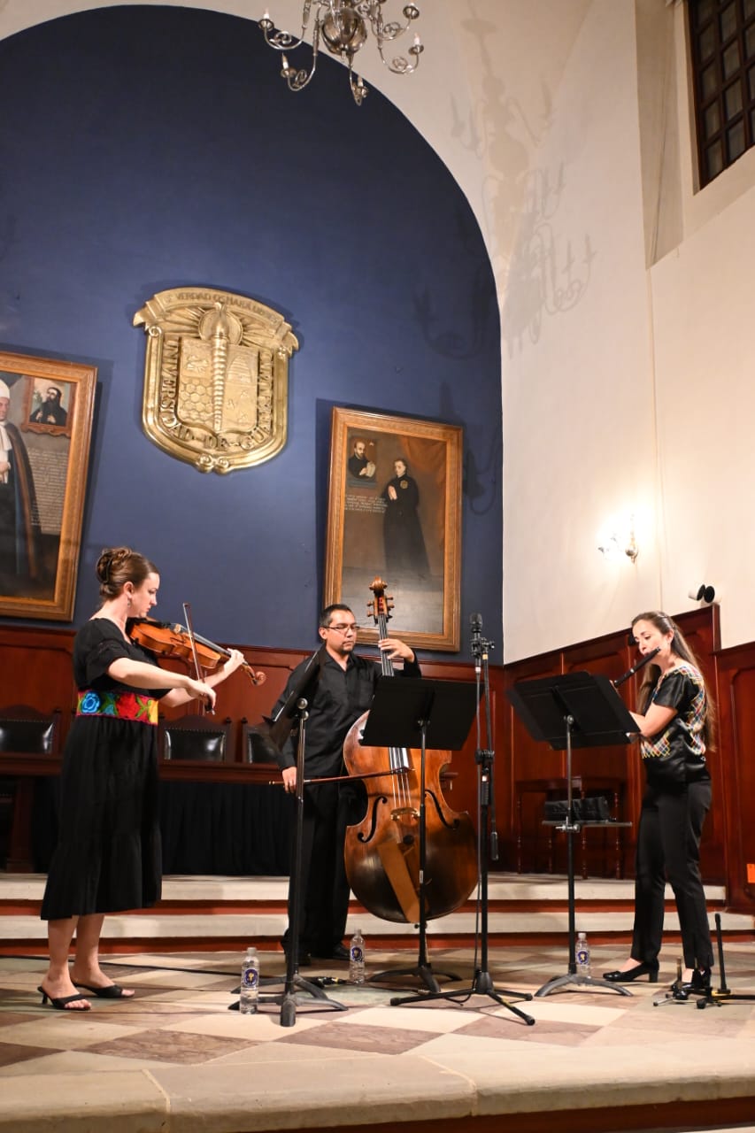 La Orquesta Sinfónica de la Universidad de Guanajuato (OSUG) inauguró su ciclo de conciertos de solistas con una velada en el Salón del H. Consejo General Universitario, a cargo del Ensamble Atecocolli, conformado por Laura Gracia (flauta), Lydia Bunn (viola) y Rodrigo Mata (contrabajo).