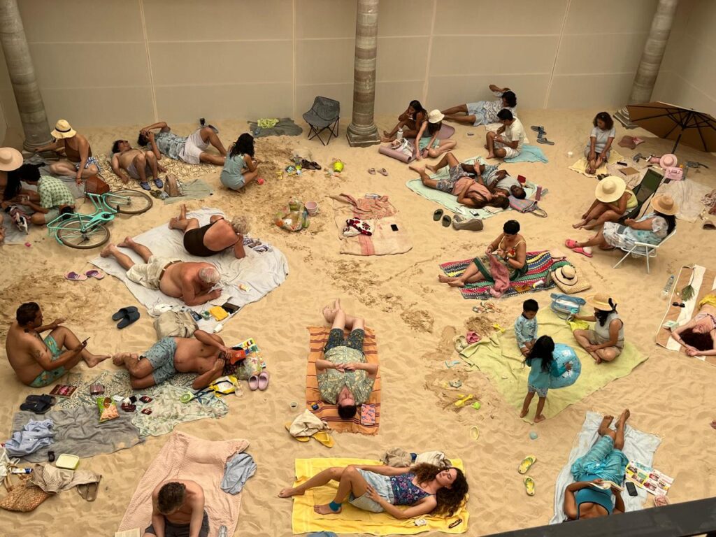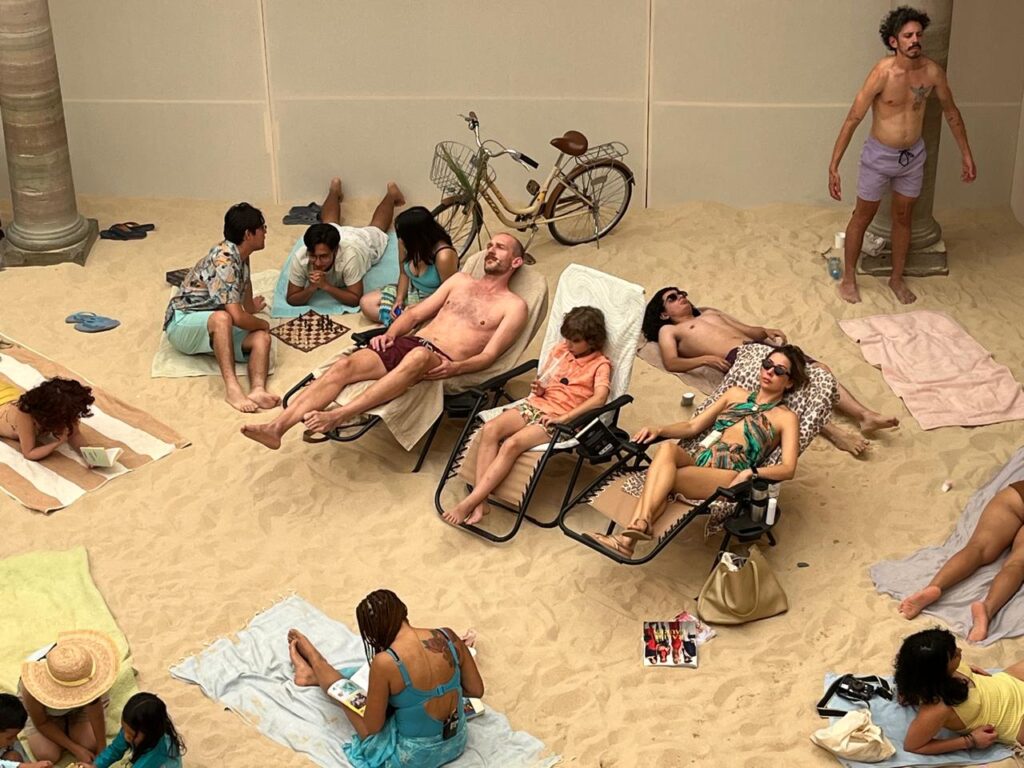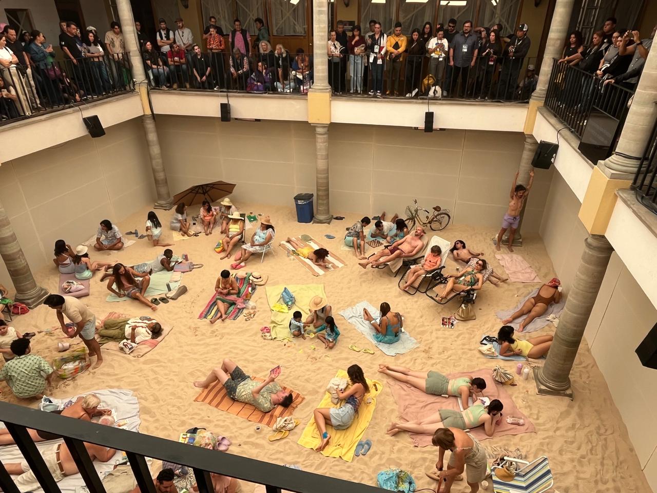 Sin duda, uno de los atractivos más destacables de esta puesta en escena, es la forma en que la Casa de la Cultura, se convirtió en una auténtica playa europea, toneladas y toneladas de arena cubren el patio principal.