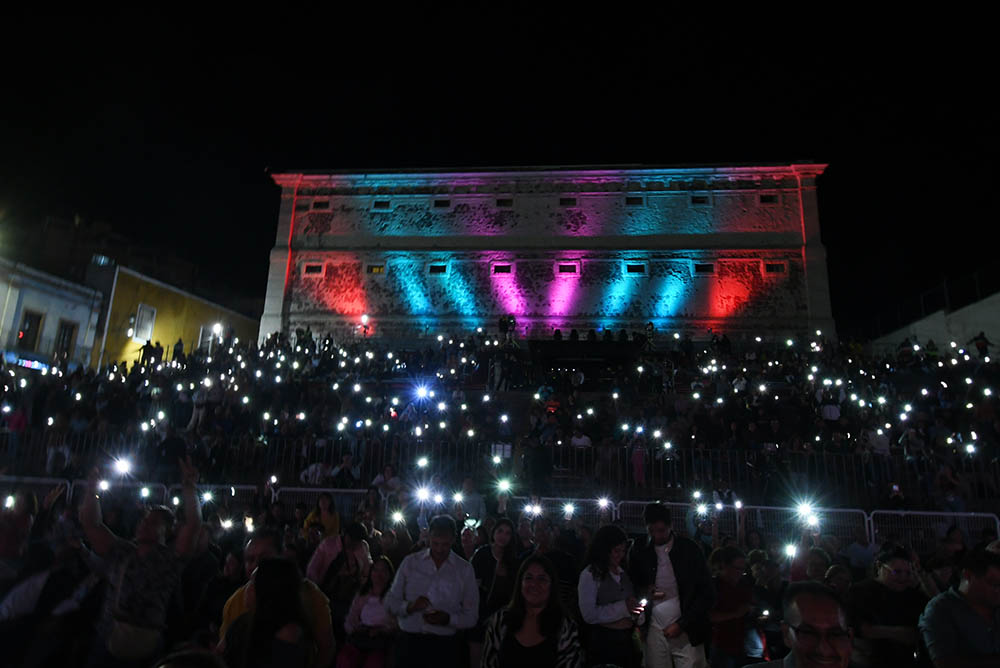 Originario del emblemático barrio de Tepito, Carmona conquistó al público guanajuatense con su energía arrolladora y su interpretación cargada de sentimiento. Entre trompetas, congas, timbales y piano, el ritmo salsero transformó el espacio histórico en una gran pista de baile donde locales y visitantes se unieron para disfrutar de una noche inolvidable.
